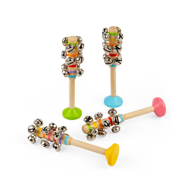 Our Colourful Jingle Bell Stick is bound to delight little hands as they learn to play along in time to the music, or just enjoy creating a tinkling bell sound. The bright wooden handles are perfectly sized for little hands to grip and shake.