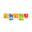 Match each brightly coloured wooden piece to the correctly shaped slot on the base board. Easy to lift wooden puzzle pieces feature a pegged handle on each piece. Each chunky wooden puzzle piece is generously sized to make it easier for little hands to lift, grasp, examine and replace. Helps to develop dexterity, matching skills and concentration. The wooden base boards of Bigjigs Toys puzzles are printed with images or colours to aid the learning process and add educational value. Made from high quality, responsibly sourced materials. Conforms to current European safety standards. 5 puzzle pieces.