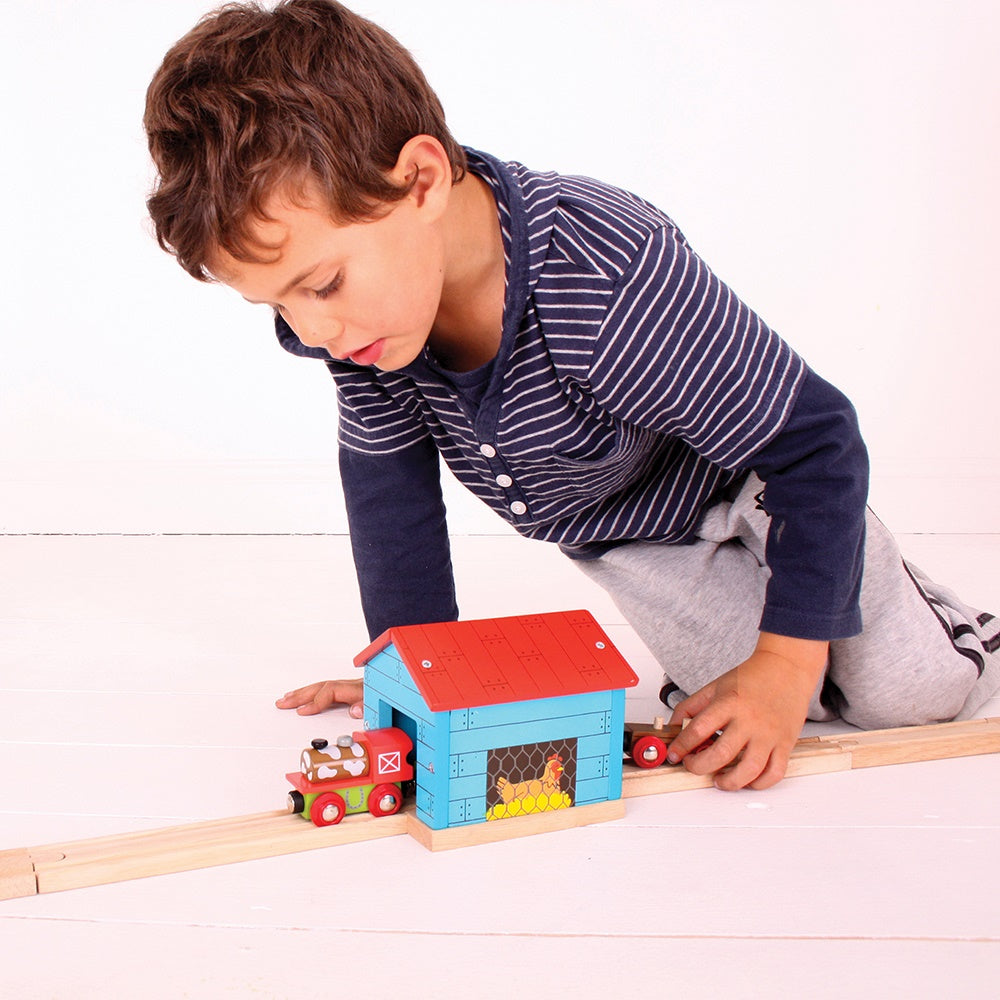 Our Chicken Shed Tunnel is perfect for bringing a farmyard theme to your wooden railway set. The tunnel is painted blue and decorated just like a real chicken coop.