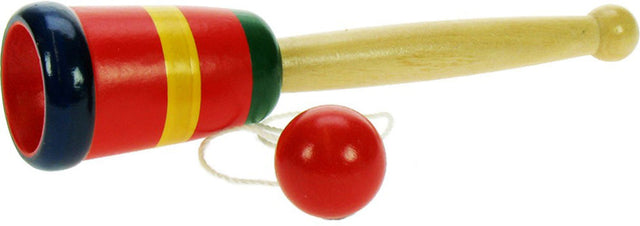 This lovely wooden set comprises a colourful painted cup on top of a long handle. A wooden ball is attached to the bottom of the cup with a piece of string. Children will spend hours mastering the art of flicking the ball up into the air and catching it in the cup, one handed.