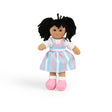 Kira Doll is ready to meet her new little bestie! Kira is a soft and cuddly ragdoll dressed in an adorable outfit. Kira's hair comes tied up in cute bunches and she wears her very own Bigjigs Toys striped blue, green and pink dress with pink shoes.