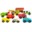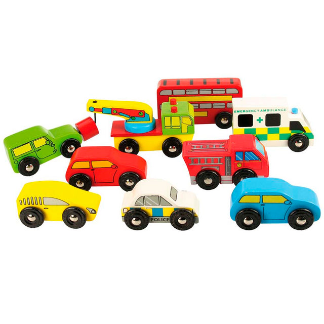 Time to get busy and add some extra traffic to your wooden railway! This wooden train set accessory set includes colourful cars plus three emergency vehicles, a bus and a tow truck make up this fleet of vehicles.